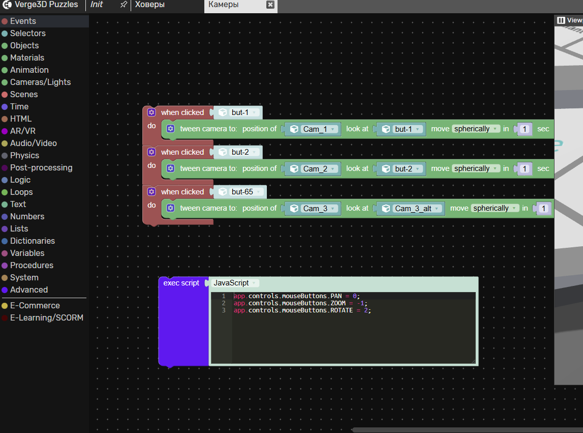 2. Заметил, что файлы в новом проекте и проекте из архива отличаются. Какой файл за что отвечает я пока не сильно разобрался, но понял что основные, которые участвуют это: map_controls.html и OrbitControls.min.js