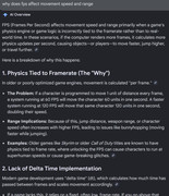 On second thought, temporarily solved this issue of same speed/range movements between devices – I googled search: why does fps affect movement speed and range