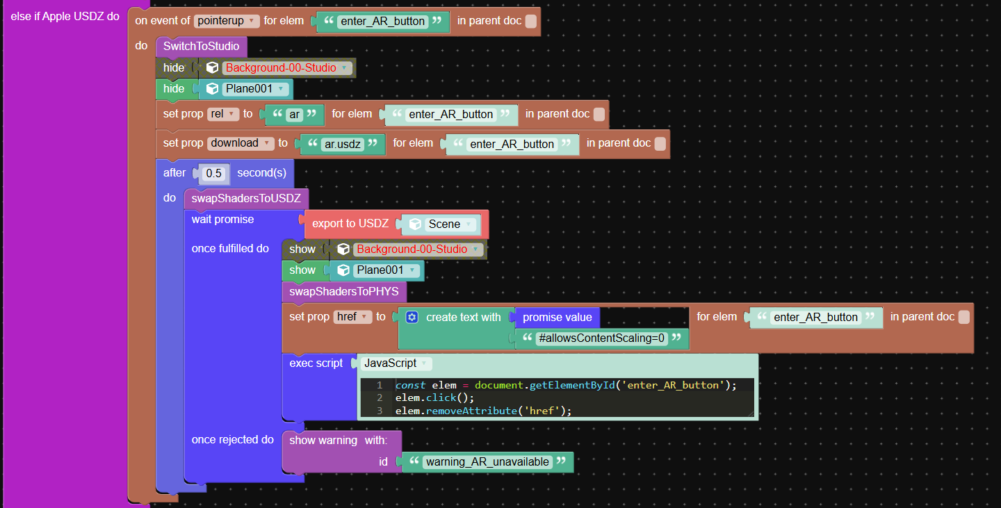 But with your info, i understood that the USDZ file is not exported when we click on the “enter ar” button, but on puzzle start, with initial choices.Now the first enter AR reflects the changes.